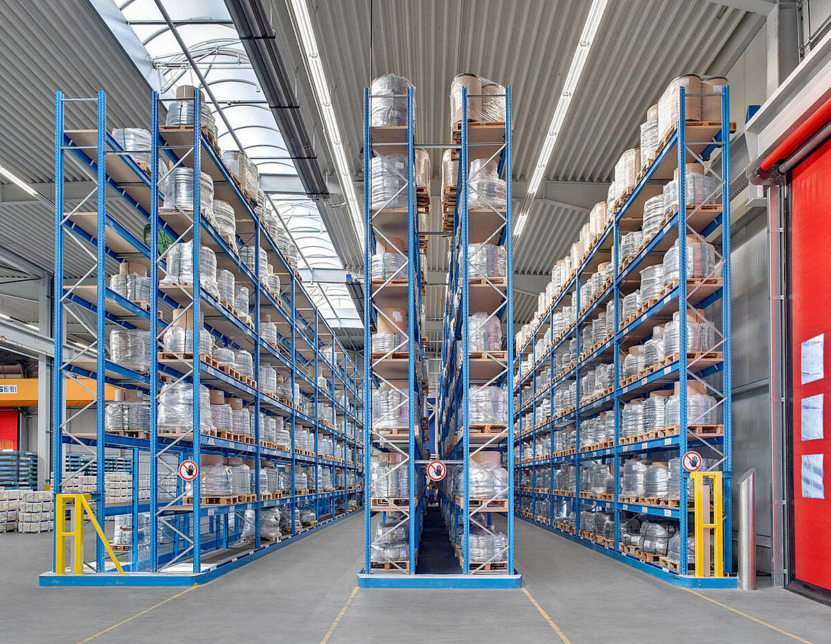 Ainda no verão de 2006, as prateleiras foram entregues e instaladas profissionalmente pela OHRA. Graças à experiência positiva com o armazenamento de perfis, a Acerinox decidiu também planejar o sistema de armazenamento para a área de bobinas de fios com a OHRA, e dispor de meios mais eficazes para construir um sistema de estantes porta paletes único.