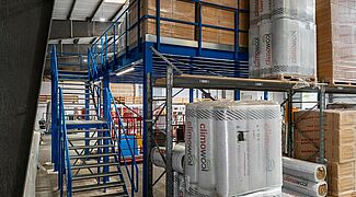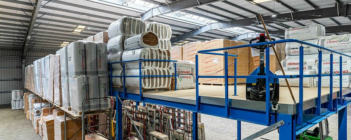 A empresa familiar FRIES, um dos principais grossistas de madeira e revestimentos para pavimentos na Alemanha, elevou a logística da sua sede em Kiel para um novo patamar — literalmente. Com a instalação de uma plataforma de armazenagem, a empresa passou a tirar o máximo partido da altura do armazém existente. O projeto resultou numa área útil adicional de cerca de 270 m², distribuída por um segundo nível a 3,8 metros de altura, onde são agora armazenadas, de forma compacta, paletes volumosas de material de isolamento. Por baixo da plataforma foi criada uma nova e espaçosa área de trabalho, eliminando assim a necessidade de construir um novo armazém.
