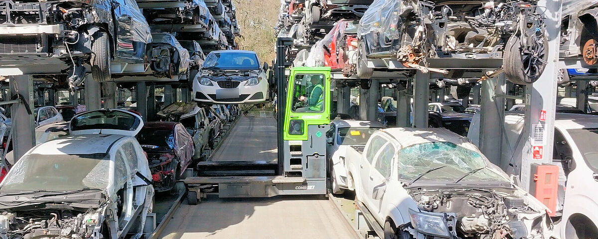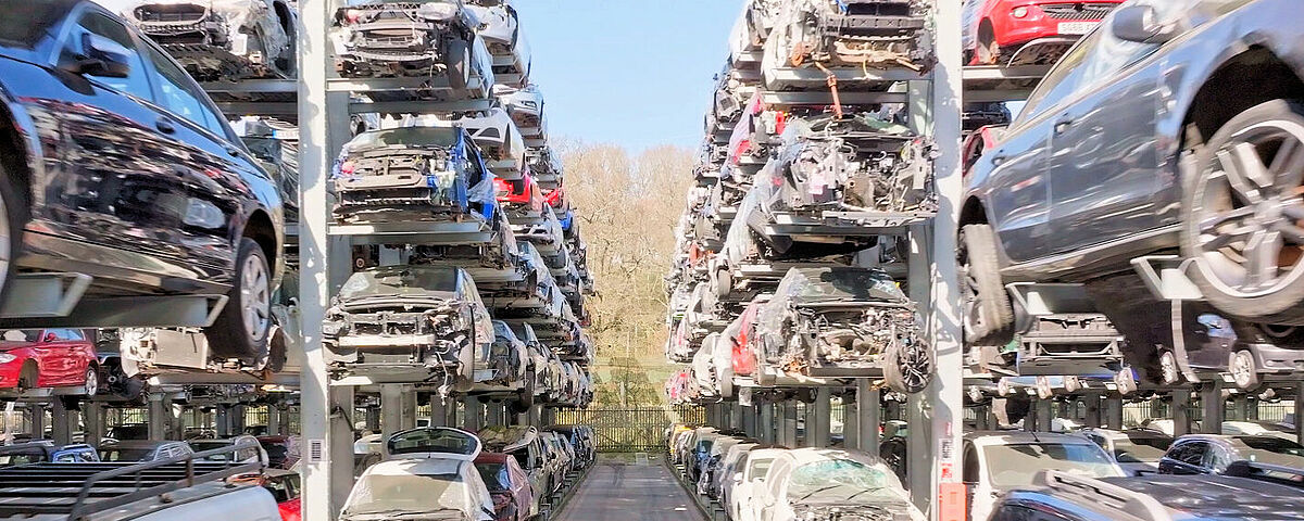 Em 2024, a Silverlake reciclou mais de 81.000 peças sobressalentes, o que corresponde à recuperação de cerca de 34.668 veículos. Para atingir esses números, são necessários processos eficientes. O que inclui o armazenamento seguro e com economia de espaço dos veículos. Por isso, a Silverlake optou pela instalação de um total de 19 estantes cantiléver da OHRA. Nas estantes com mais de 8 m de altura, podem ser armazenados veículos antigos com até 2 toneladas em 5 níveis de armazenamento. Os braços cantiléver de 2 metros de comprimento podem ser ajustados de forma flexível para cima ou para baixo em intervalos de 100 milímetros. Graças ao sistema de encaixe patenteado dos braços cantiléver, não são necessárias ferramentas para o ajuste. Assim, a Silverlake pode ajustar rapidamente a altura dos níveis de armazenamento, por exemplo, para armazenar também carrinhas ou SUVs.