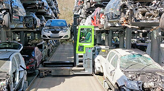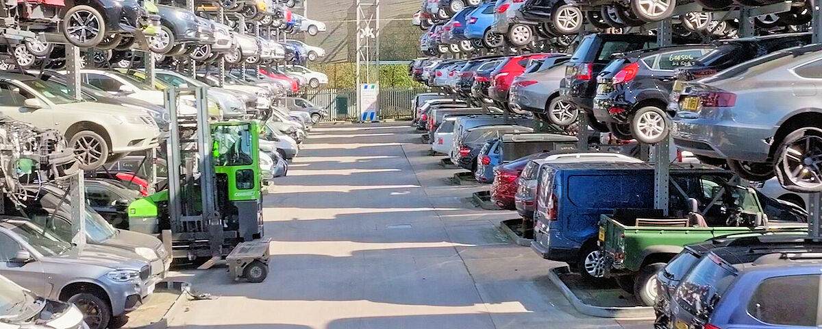 Para garantir acesso rápido e direto a um grande número de veículos em fim de vida, a Silverlake Automotive Recycling, sediada em Hampshire, utiliza estantes cantiléver da OHRA para armazenar carros, SUV e carrinhas. Com mais de 8 metros de altura, estas estantes permitem empilhar com segurança até cinco veículos de 2 toneladas. Cada corredor de estantes inclui calhas de guia, permitindoque os veículos em fim de vida útil possam ser armazenados e retirados com um empilhador lateral. Isto permite manter os corredores estreitos e instalar mais estantes na mesma área. A Silverlake pode, portanto, armazenar cerca de 2500 veículos em fim de vida útil no local.