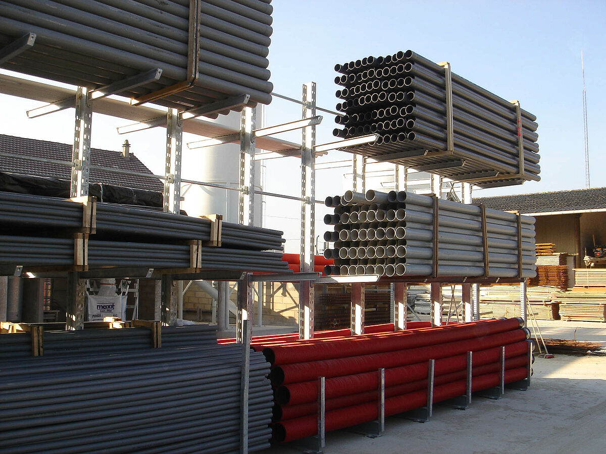 Para o armazenamento de alumínio e plástico, as estantes cantilever são a solução de armazenamento ideal para produtos longos, exemplo perfis de alumínio, plástico, tubos e painéis de PVC, caixilhos de janela, calhas e outros materiais longos que podem ser armazenados e removidos de forma particularmente economizadora e acessível com este sistema de estantes.